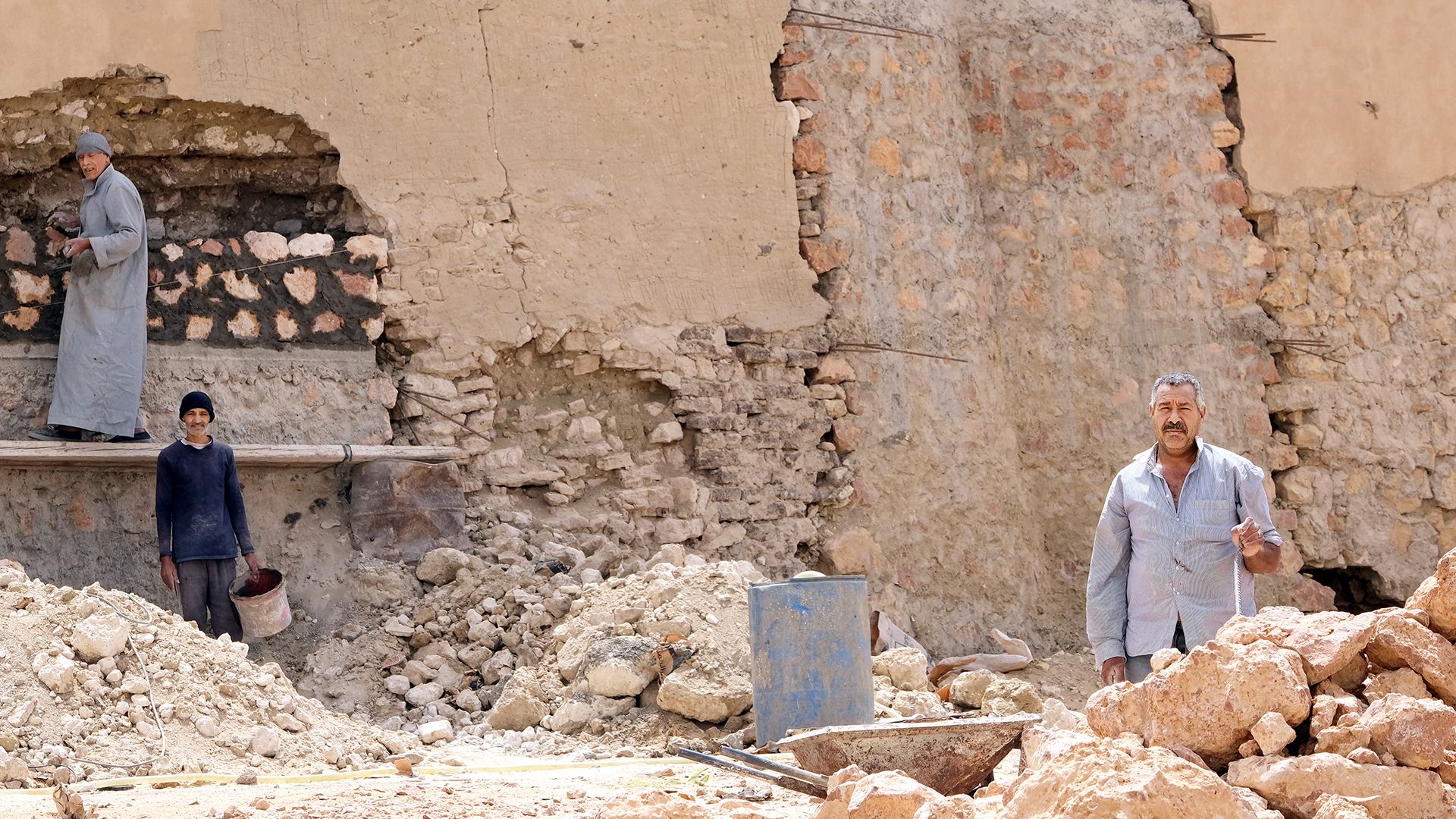 Die Mauern des Klosters Baramous bestehen innen aus Kalksteinen und Mörtel und sind außen mit Lehm verkleidet.