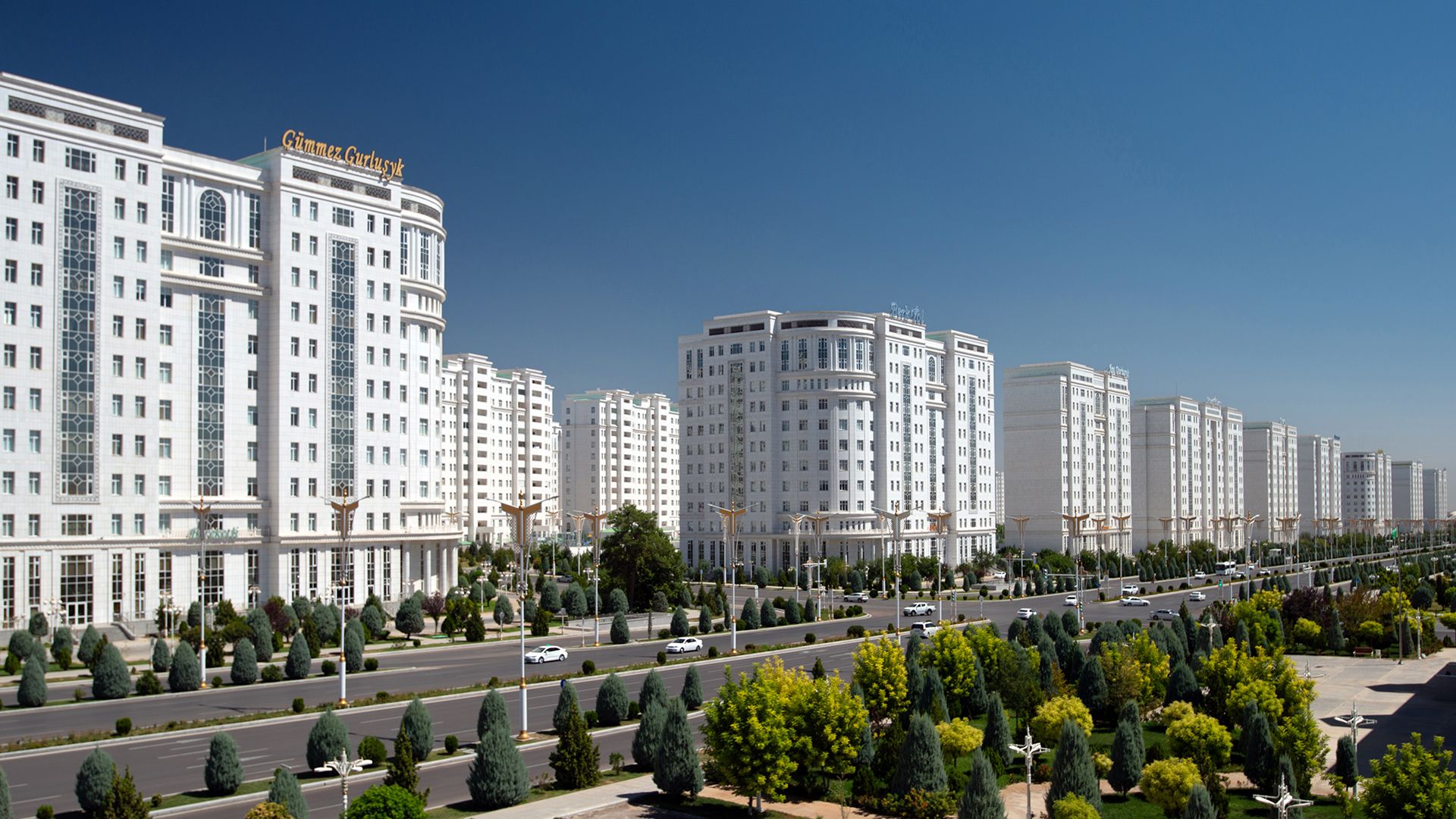 Vom Präsidentenpalast über Büro- und Wohntürme bis hin zu Supermärkten und sogar Autowerkstätten: Sie alle schimmern in weißem Marmor. Alleine an der 12,6 km langen Hauptstraße Bitarap Türkmenistan Sayolu stehen 170 Gebäude, die mit insgesamt 1.156.818 qm davon verkleidet sind. Hinter den glänzenden Fassaden verbirgt sich allerdings eines der repressivsten Regime der Gegenwart, wie Human Rights Watch urteilt. Bekannt ist darüber im Westen ebenso wenig wie über die weiße Wüstenstadt selbst, denn Turkmenistan gehört aufgrund der herrschenden Diktatur zu den abgeschottetsten Ländern überhaupt.