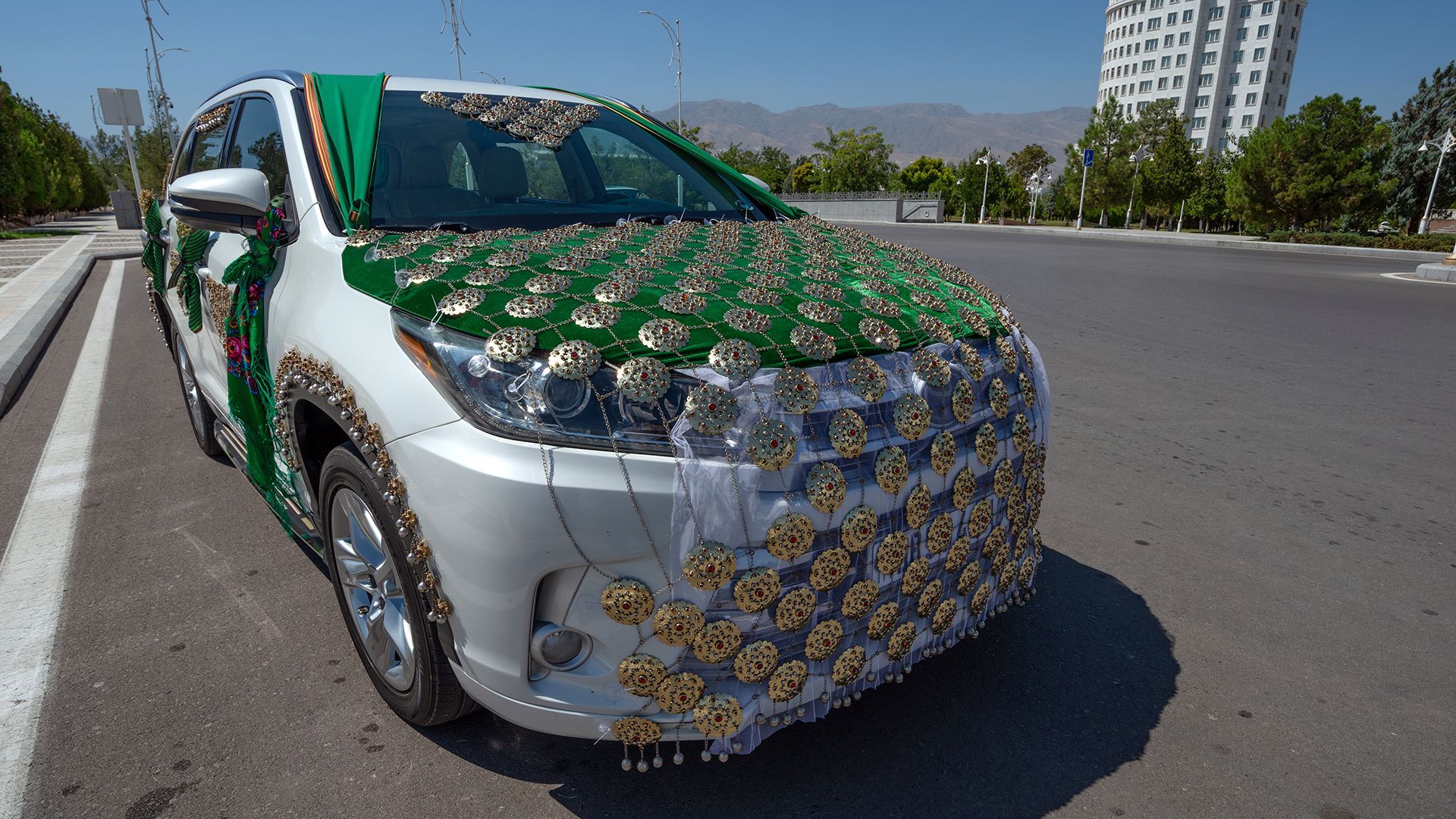 Die Ruhnama wurde in mehr als 40 Sprachen übersetzt, meist als Gefallen für den Diktator, um Aufträge zu ergattern. So hat Daimler-Chrysler die deutsche Übersetzung des ersten Teils spendiert und Siemens den zweiten herausgeben lassen. Die französische und die türkische Übersetzung ließ jeweils ein Baukonzern springen: Bouygues mit Sitz in Paris und die Çalık Holding aus Istanbul. Franzosen und Türken dominieren die turkmenische Bauwirtschaft. Der Hochzeitspalast beispielsweise wurde durch das türkische Bauunternehmen Polimeks errichtet. Çalık engagierte sich vor allem bei Infrastrukturprojekten wie Kraftwerken. Bouygues hingegen baute viele der anderen Monumentalbauten, darunter die Türkmenbaşy Ruhy Moschee, die ausgefallenen Ministerialbauten im Regierungsviertel sowie Gebäude der Universität. Auch das Yildiz, ein eiförmiges Luxushotel auf einem Hügel im Südwesten von Aschgabat, wurde von den Franzosen errichtet. Es zahlt sich also aus, sich mit dem Führer der Turkmenen gutzustellen. Das galt weiterhin, nachdem Nijasow 2006 zu seinen Eltern ins Marmormausoleum zog, offiziell aufgrund eines natürlichen Herzversagens. Denn obwohl das schwer zu glauben ist, Nijasows Nachfolger Gurbanguli Malikgulijewitsch Berdimuhamedow legte in Sachen Exzentrik und Bauwut noch eine Schippe drauf. Er hält im Land bis heute die Fäden in der Hand, auch wenn er das Präsidentenamt 2022 an seinen Sohn Serdar übergab. Der Junior darf allenfalls repräsentative Aufgaben übernehmen. Selbst stellte sich Berdimuhamedow jüngst an die Spitze des reformierten Parlaments und ließ sich den Titel Nationaler Führer des turkmenischen Volkes verleihen. Er liebt Titel und hat sich über die Jahre eine ganze Sammlung davon zugelegt. Bevorzugt lässt er sich mit Beschützer (turkmenisch: Arkadag) anreden.