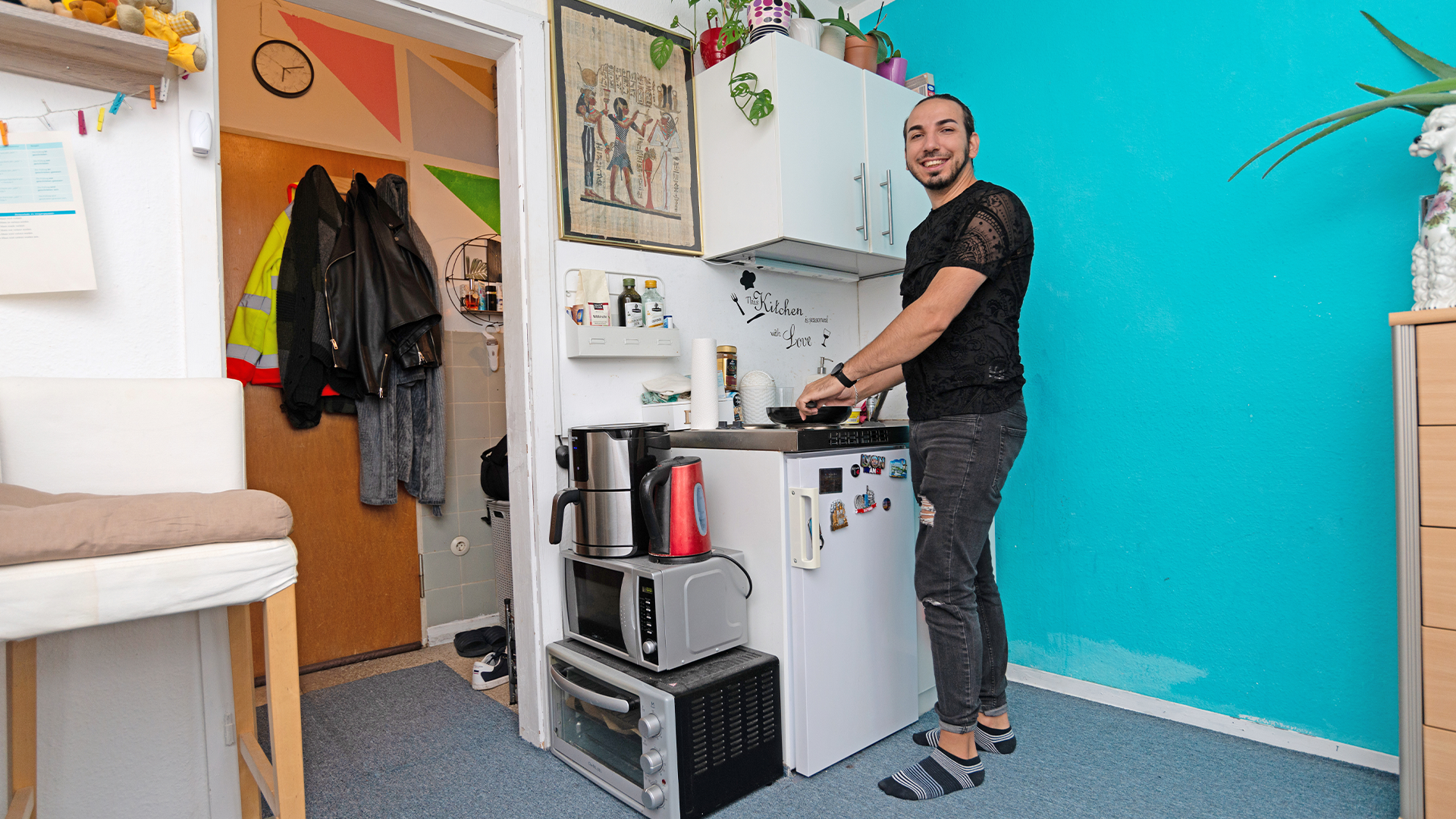 „Ich habe mich bestimmt schon für über 200 Wohnungen beworben“, sagt Tarlan. „Die letzten habe ich mir gar nicht mehr angeschaut und der Maklerin einfach nur meine Unterlagen in die Hand gedrückt. Ich würde alles nehmen.“ Seit gut drei Jahren wohnt der Aserbaidschaner in einer privaten Flüchtlingsunterkunft in Niedernhausen. Dort lebt er in einem rund neun Quadratmeter großen Zimmer. Küche und Bad teilt er sich mit allen anderen auf der Etage. „Es ist sehr sauber hier. Täglich kommt ein Reinigungsunternehmen. Nur die Toilettentür lässt sich seit Monaten nicht abschließen. Da gibt es immer mal Überraschungsbesuch“, meint Tarlan.