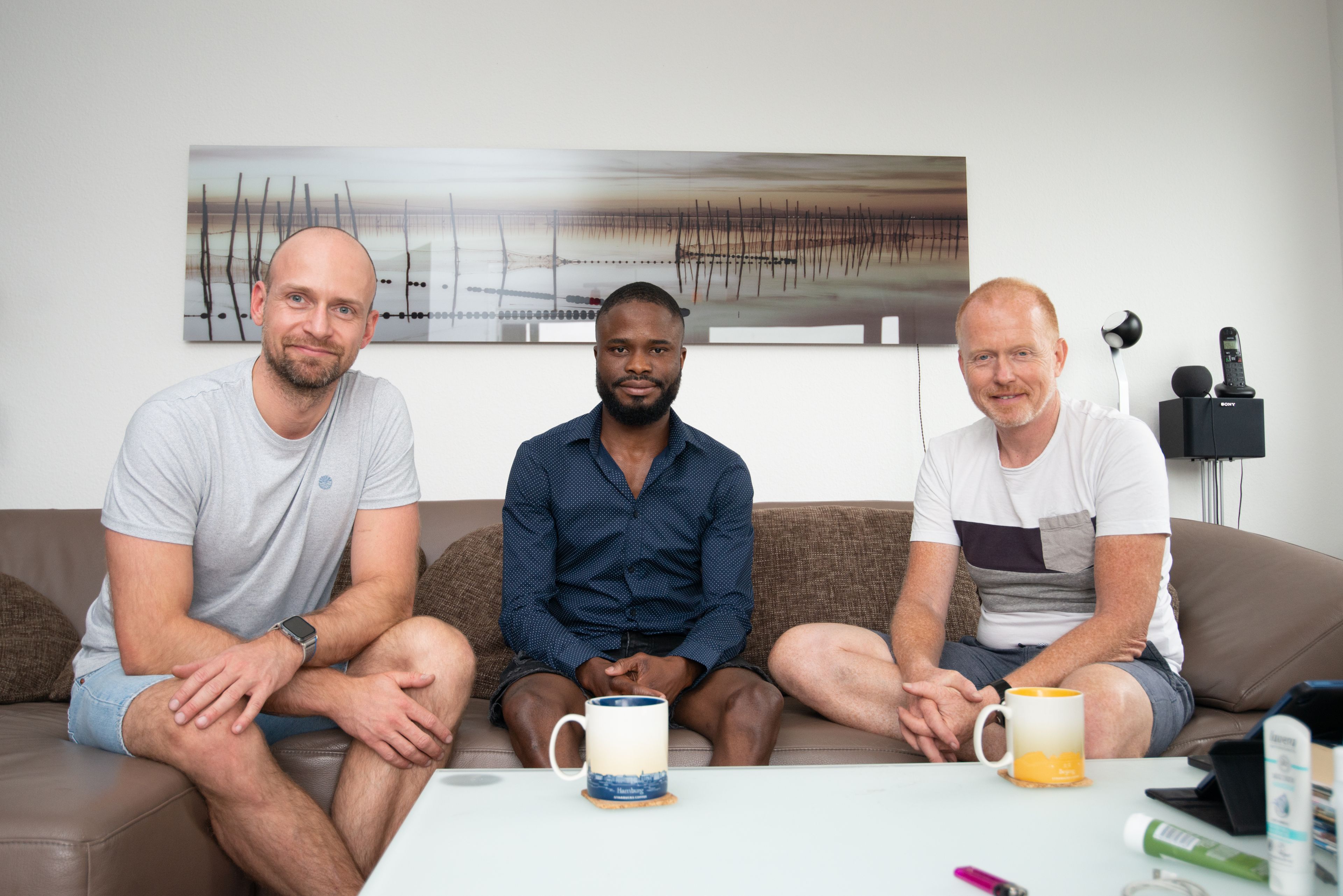 Tani rutscht auf der beigen Leder-Chaiselongue hin und her und strahlt. „Das ist mein Lieblingsplatz“, sagt der Nigerianer. Das recht exklusive Sitzmöbel steht in einer Maisonettewohnung im Frankfurter Stadtteil Rödelheim und gehört, wie auch die Wohnung, Tom und Chris. Das Paar hat Tani 2021 aufgenommen, nachdem er in Wiesbaden versucht hatte, sich das Leben zu nehmen. Er wollte lieber verbluten als zurück nach Italien, ins Flüchtlingslager mit syrischen und afghanischen Männern, die den schwulen Schwarzen immer wieder verprügelten.