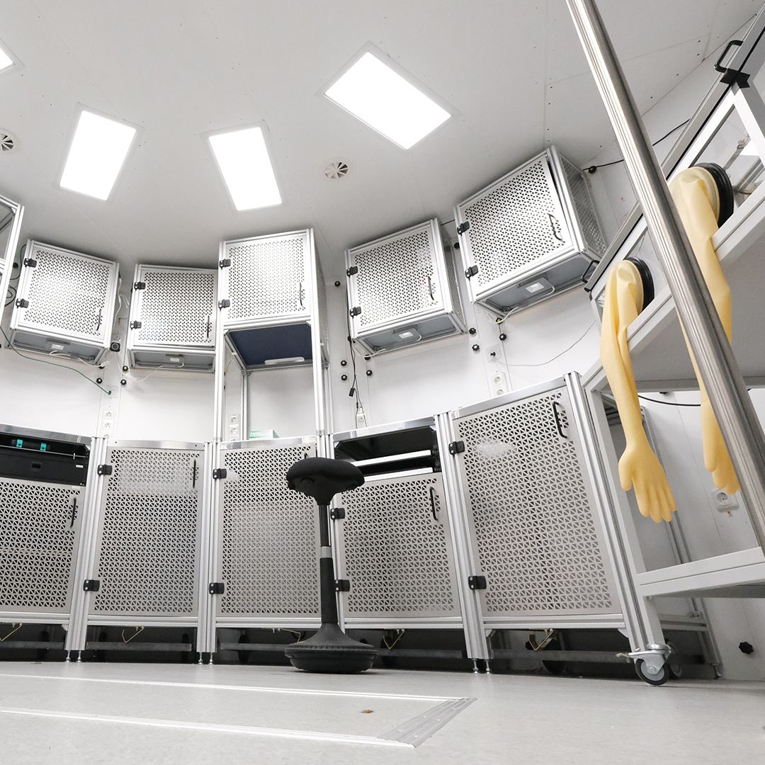 Das Arbeitsmodul, in dem möglichst viel Labor zum Forschen untergebracht wird, ist zweigeschossig. Eine steile schmale Leiter führt hoch in eine Art Pausenraum, beispielhaft möbliert mit grünen Sitzsäcken und einem Feldbett. Es ist überall eng, sehr eng. Die eingeschossigen Wohnmodule haben deshalb hohe Decken, um dieses Engegefühl zu mildern. An der Schnittstelle zwischen dem wissenschaftlichen Labor und dem Freizeitmodul befindet sich ein kleines Gewächshaus. Die Pflanzen dienen der Nahrungsversorgung, der Sauerstoffproduktion und für Experimente. Im Schlafmodul hat jeder Bewohner sein eigenes Quartier. Diese Möglichkeit zum Rückzug ist „enorm wichtig“, sagt Heinicke. Schlechte Laune könne „hochgradig ansteckend wirken“. In den Wohneinheiten geht es viel ums gute Gefühl, in der Laboreinheit um möglichst viel Forschung und Analyse. Luftdruck, CO2, Feuchtigkeit und Sauerstoffgehalt werden ständig kontrolliert und koordiniert. Eine sogenannte Glovebox, ein Kasten mit zwei Löchern und Sicherheitshandschuhen, dient Versuchen mit gefährlichen Materialien. Kleine Pakete mit Marsstaub liegen bereit. Da bislang noch kein Material direkt vom Mars auf die Erde transportiert worden ist, wurde dieser künstlich hergestellt. Die Basis dafür bilden Daten, die Mars-Rover wie Curiosity und Perseverance zur Erde funkten. Die Nachbildung ist jedoch so echt, dass es verboten ist, den künstlichen Marsstaub außerhalb von Laborbedingungen zu erfühlen. Elemente des sehr feinen Staubs setzen sich in der Lunge fest und können tödlich sein. Zudem darf das Material, das aussieht wie eine Probe von einem ockerfarbenen Sandstrand, nicht durch Außenkontakt verunreinigt werden.